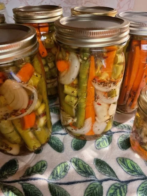 Come join us for an afternoon class on preserving Veggies through Pickling. This is one class that you can drink it in while you learn. Let us do the work & you relax. At the end of our demonstration you will recieve a small jar of pickled veggies to take home. Cost: $45/personAge limit 10 years old & upClass size is limited to 24. Book early through our EmailYou will recieve a small jar of pickled vegetables, one glass of Wine, Sparkling Cider or Heirloom Apple Cider. Light refreshments of hors d’oeuvres will be provided. Plus, you will learn to pickle to make your own hors d'oeuvres. Date TBN